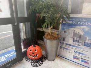お店の入り口に、ちょこんとハロウィン