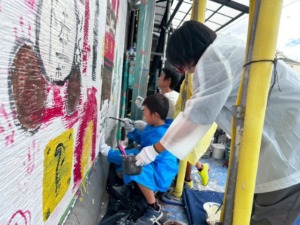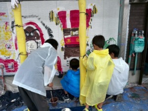 「ここは赤がええんちゃう?」「もっと大きくしよ!」