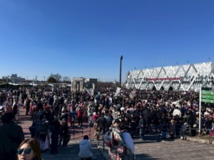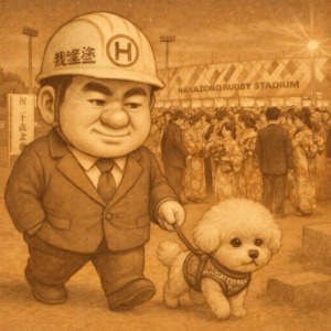 賑わう花園ラグビー場をチャー君と