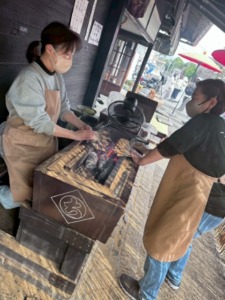 炭火で丁寧に焼かれていくお餅